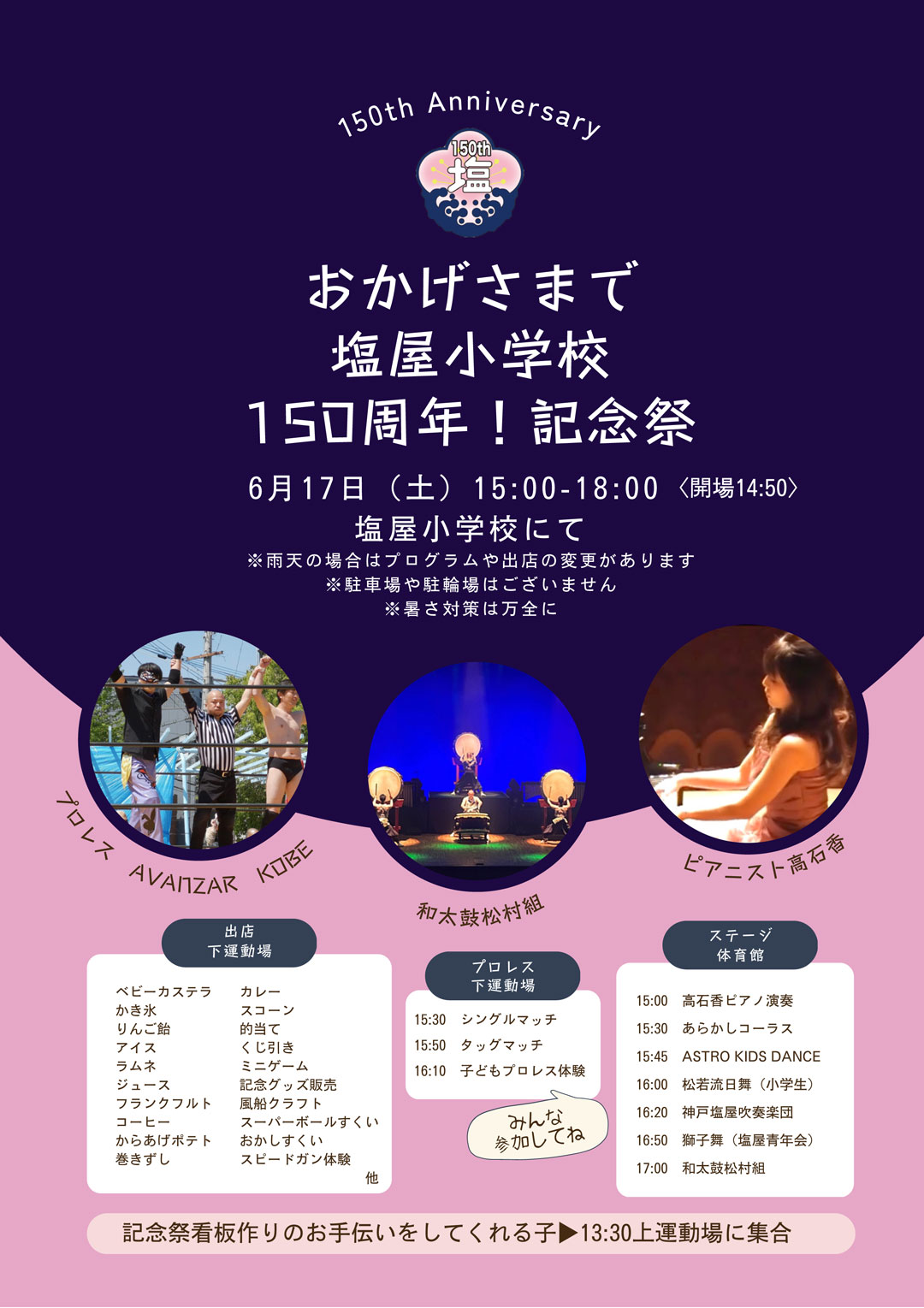 主催:塩屋小学校150周年記念事業実行委員会 (塩屋小学校PTAOB・塩屋小学校学校運営協議会・現PTA)