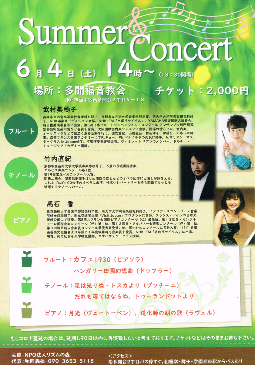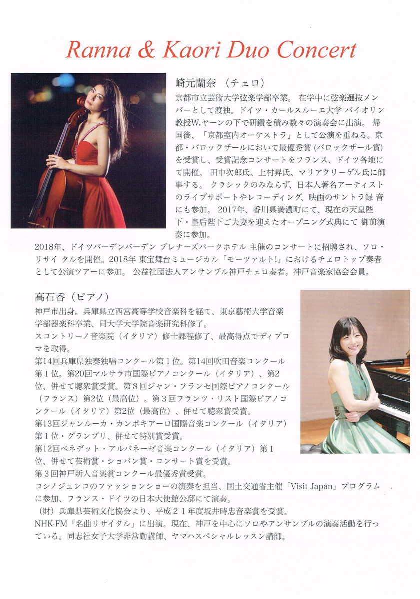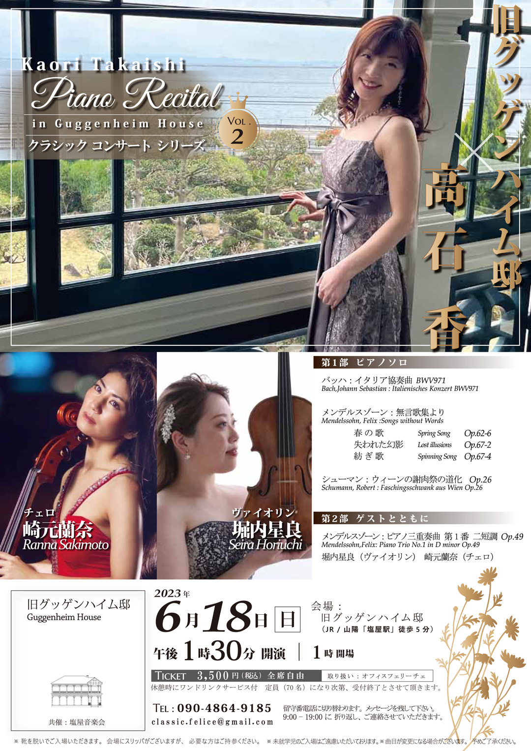 開場 午後 1時 / 開演 午後 1時30分会場:旧グッケンハイム邸(JR/山陽「塩屋駅」徒歩5分) -