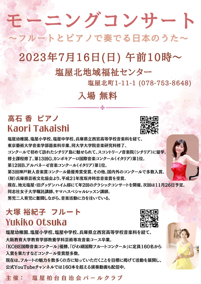モーニングコンサート~フルートとピアノで奏でる日本のうた~ ※終了しました。開催日時2023年7月23日(日)