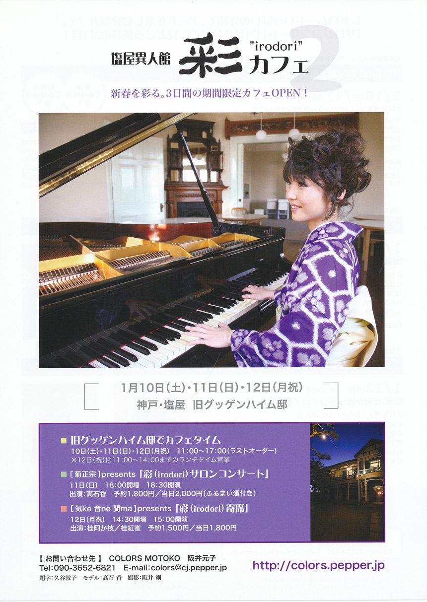 ピアニスト高石 香 | Kaori Takaishi,pianist- 彩(irodori)サロンコンサート※終了しました。開催日時2009年1月11日(月) 18:30開演(18:00開場)会場神戸・塩屋・旧グッゲンハイム邸ピアニスト高石 香 | Kaori Takaishi,pianist