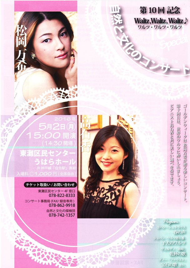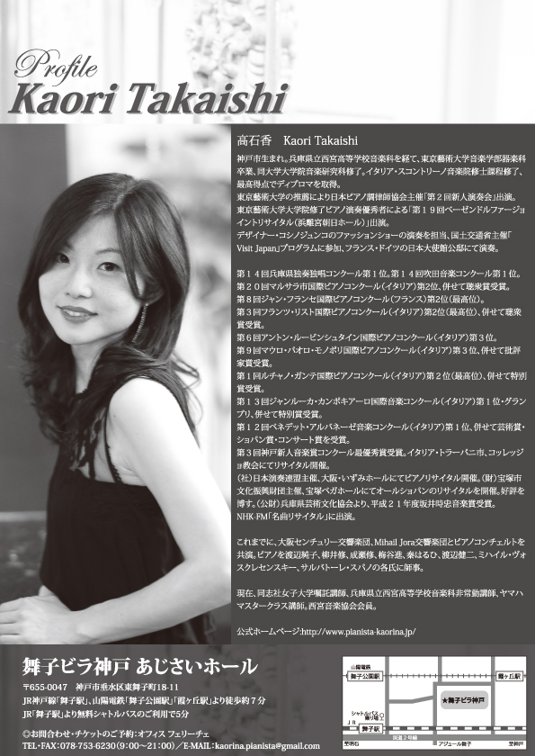 (第3部16:00頃に出演予定)会場神戸・あじさいホールピアニスト高石 香 | Kaori Takaishi,pianist -
