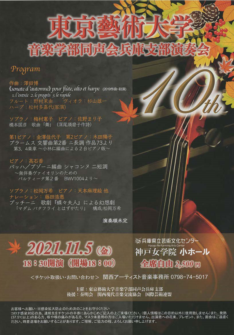 東京藝術大学 11th 音楽学部同声会兵庫支部演奏会開催日時2023年10月20日(金)